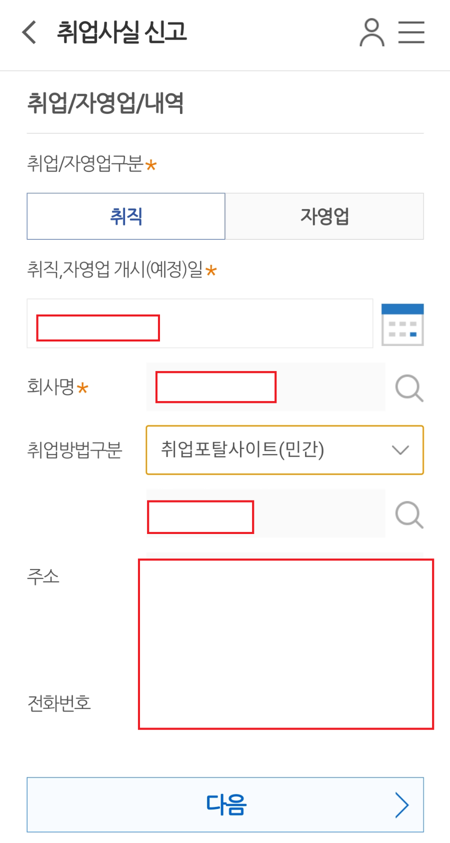하단부터는 본격적으로 재취업 내역을 입력해야한다.