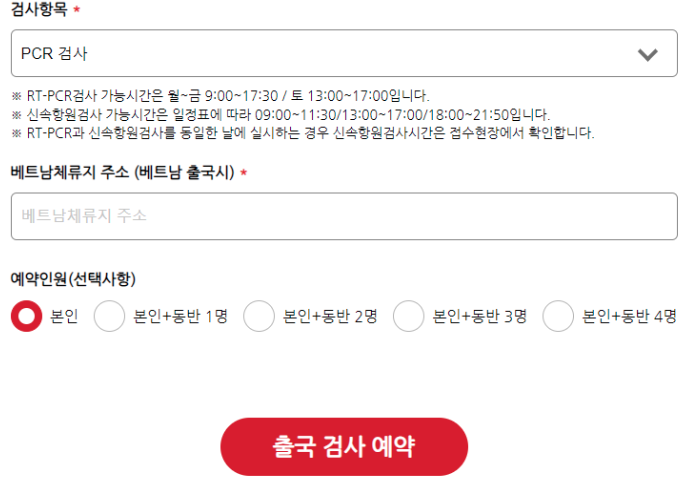 예약인원을 선택한 후 출국 검사 예약을 하면 된다.
