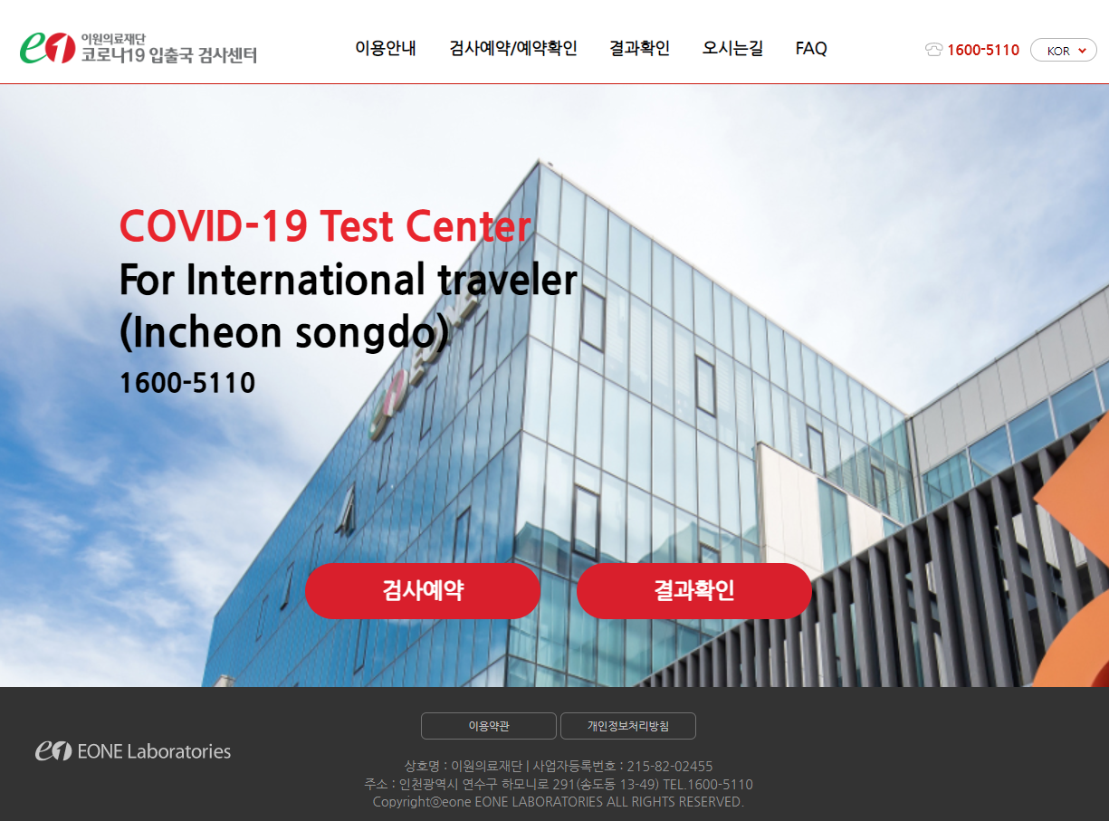 COVID-19 Test Center For International traveler (Incheon songdo) 1600-5110