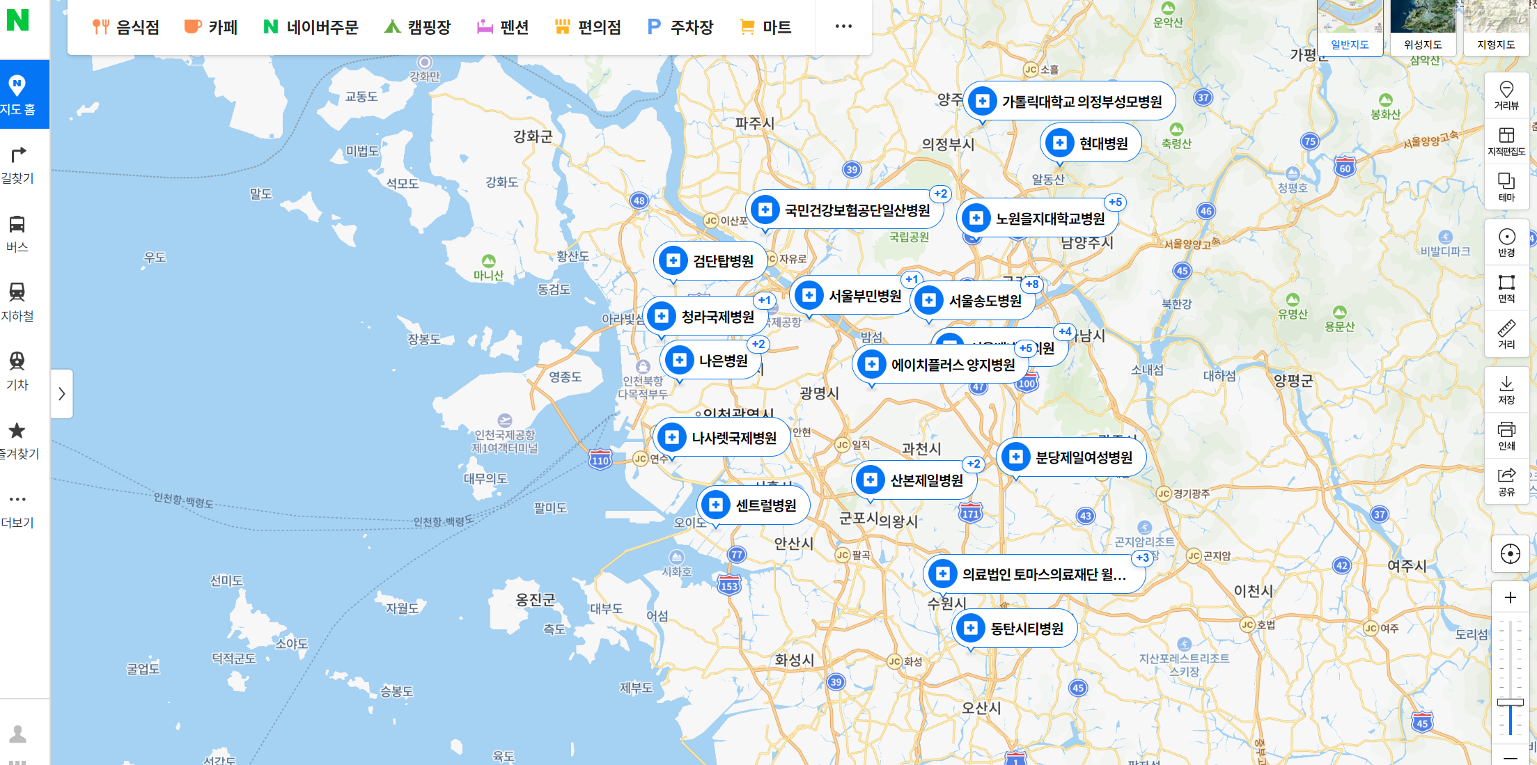 네이버나 다음 지도에서 PCR검사 라고만 입력해도 PCR 검사가 가능한 주변 병원들이 나온다.