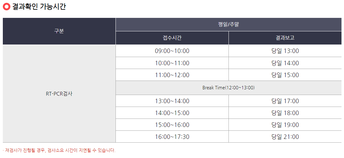 (간혹 해당 PCR검사소의 사이트가 있어서 확인이 가능한 경우가 있지만, 업데이트 안된 이전 내용으로 방치하는 경우도 있다. 그러니 꼭 전화해서 확인해야한다.)