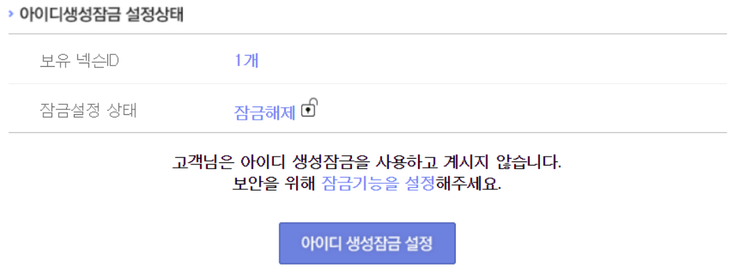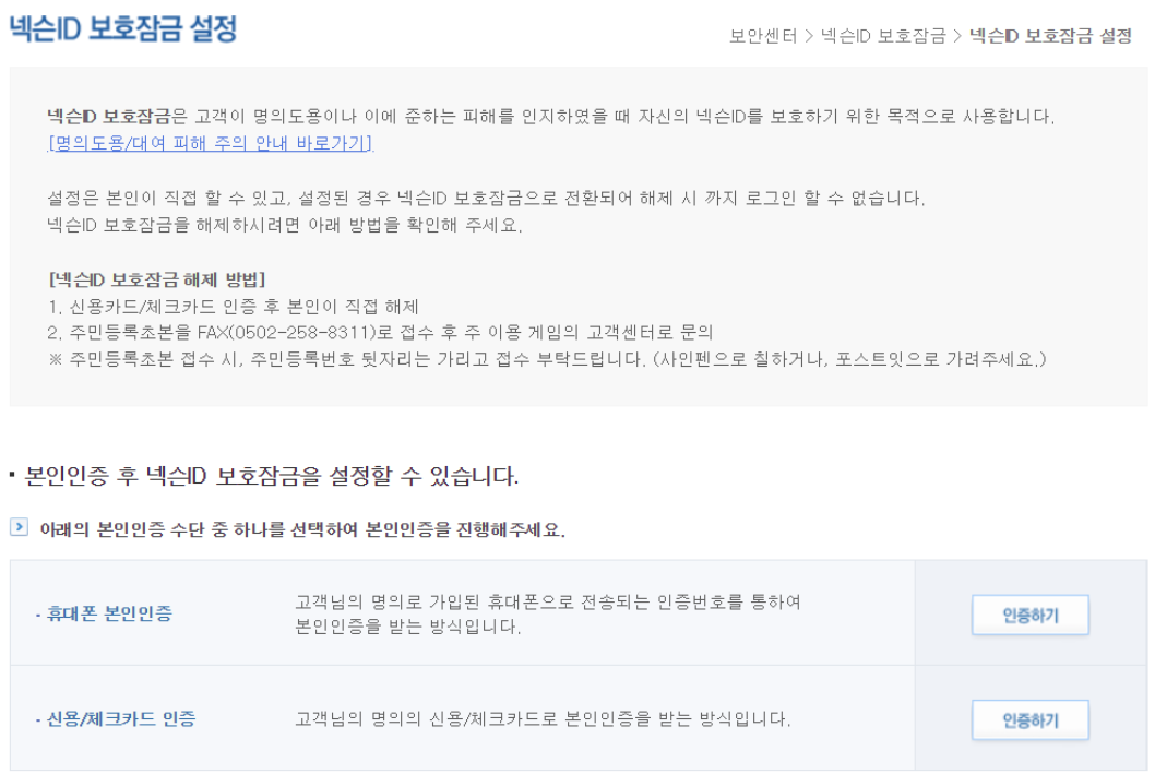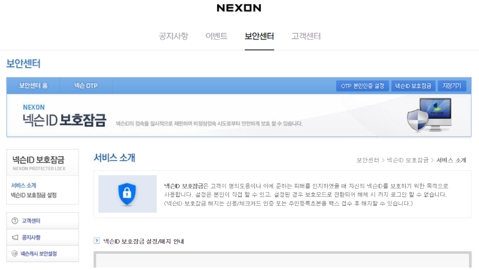 "넥슨ID 보호 잠금 즉시 설정"이라는 링크는 이미 만료 됐으니 "넥슨 ID 보호 잠금 직접 설정"을 클릭했다.