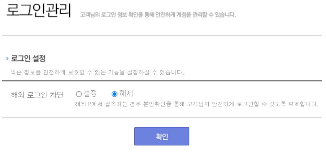 다시 비밀번호 입력하면 해외 로그인 차단 설정을 할 수 있게 된다.
