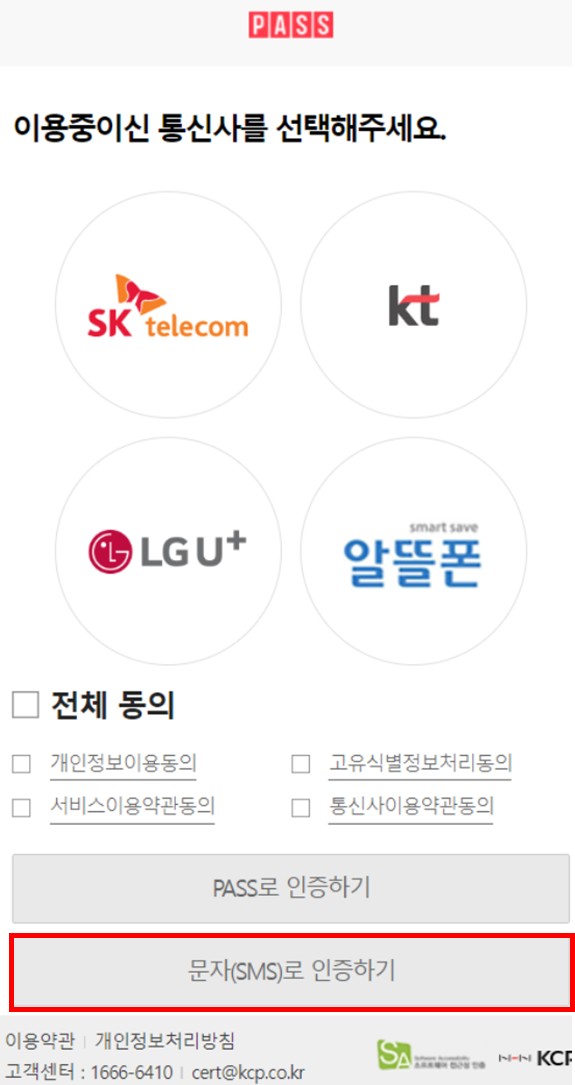 간단한 건 휴대폰 쪽 PASS 인증 어플로 해도 되고 SMS로 해도 되지만 무조건 SMS로 한다.