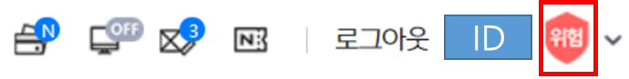 로그인 후 화면 오른쪽 상단에 위험 마크가 표시됐다.