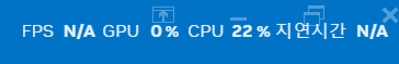 컴퓨터를 사용하다 보면 "FPS N/A GPU xx% CPU xx% 지연시간 N/A " 등의 메시지가 우측 상단에 뜨는 경우가 있다.