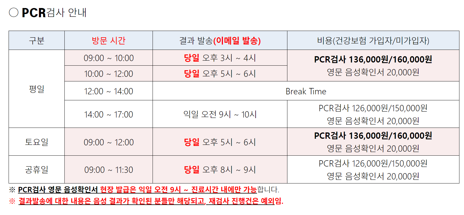 다시 대한민국 입국을 위해 48시간 내에 PCR 24시간 내 항원검사 음성 결과를 영문 서류로 준비해서