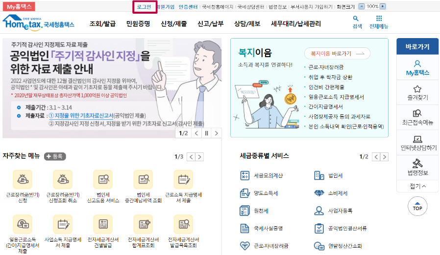 증명서 출력을 클릭하면 로그인 화면이 나오네요.