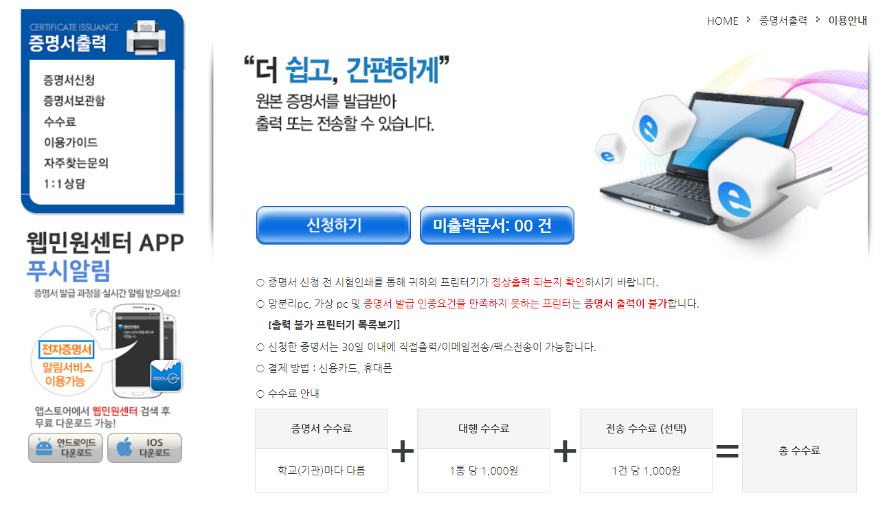 No.1 대학증명발급포털 웹민원센터(www.webminwon.com) 인터넷으로 발급한 졸업 증명서, 성적 증명서 등 ...