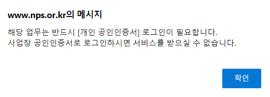 만약 일반 인증으로 진행하면 하기와 같이 공인 인증서로 로그인 하라고 하기도 합니다.