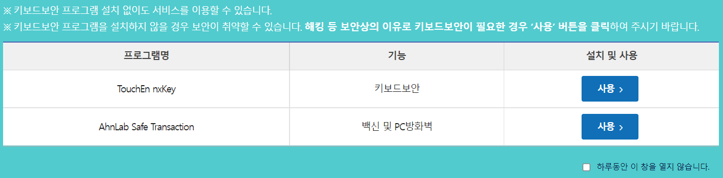 보안프로그램을 설치해달라고하면 설치부터 진행해주세요