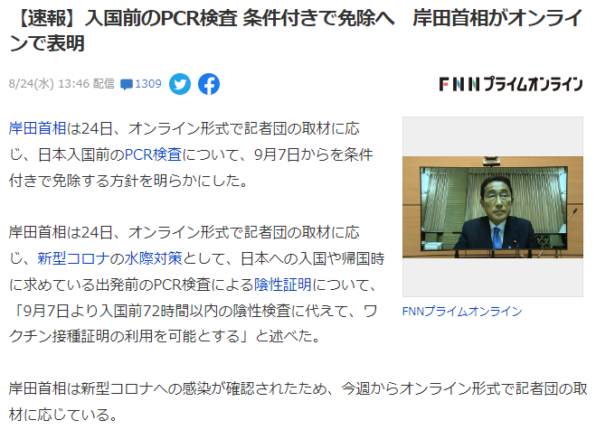 | 9월 7일부터 백신 3차 접종자 일본 입국시 PCR 면제 적용 (0) | 2022.08.24 |