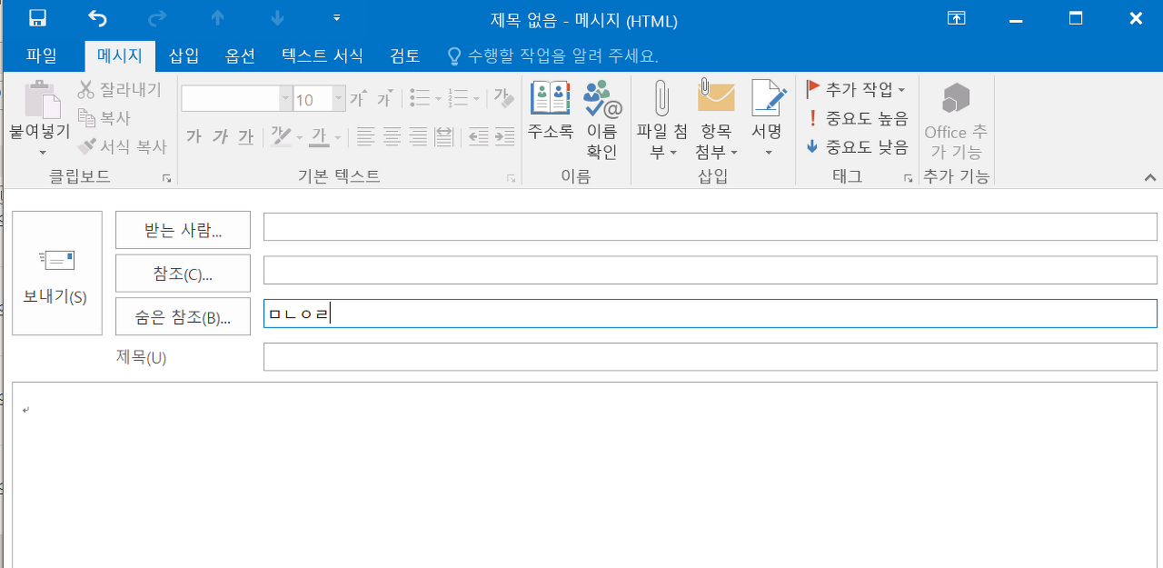 이 기능을 이용해서 수신인 부분에 아무 의미 없는 글자를 입력해두자