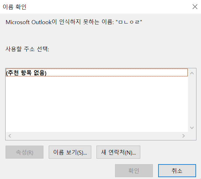아웃룩에는 발송전 수신인의 메일주소를 확인하고 보내게 된다.