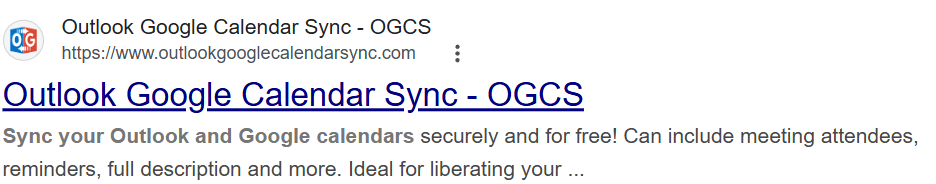 검색엔진에 " OutlookGoogleCalendarSync"을 검색하면 OGCS라는 약자와 함께 해당 사이트가 검색된다.