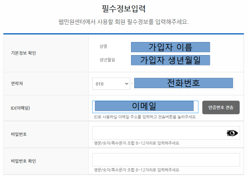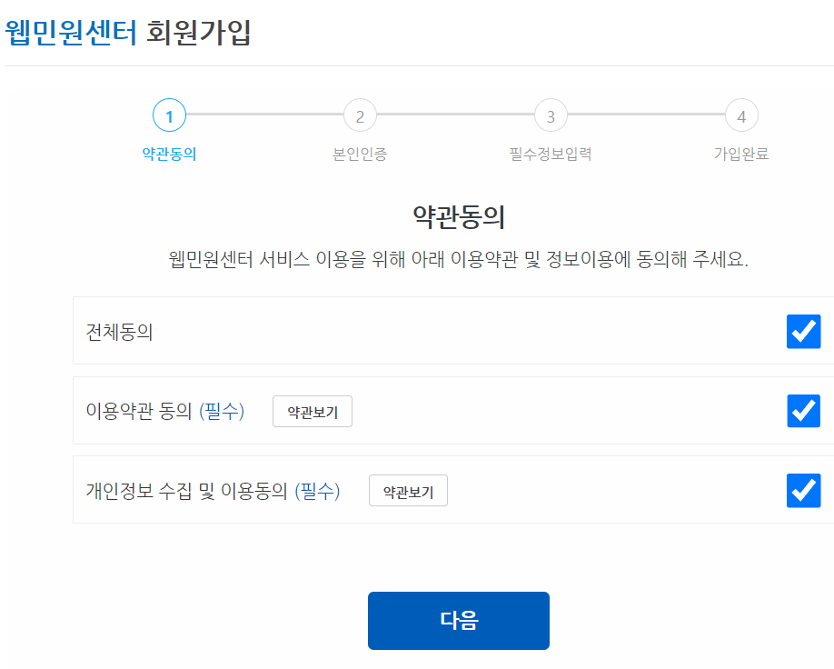 우선 포털사이트에서 웹민원센터를 입력해서 하기 URL을 들어갑니다.