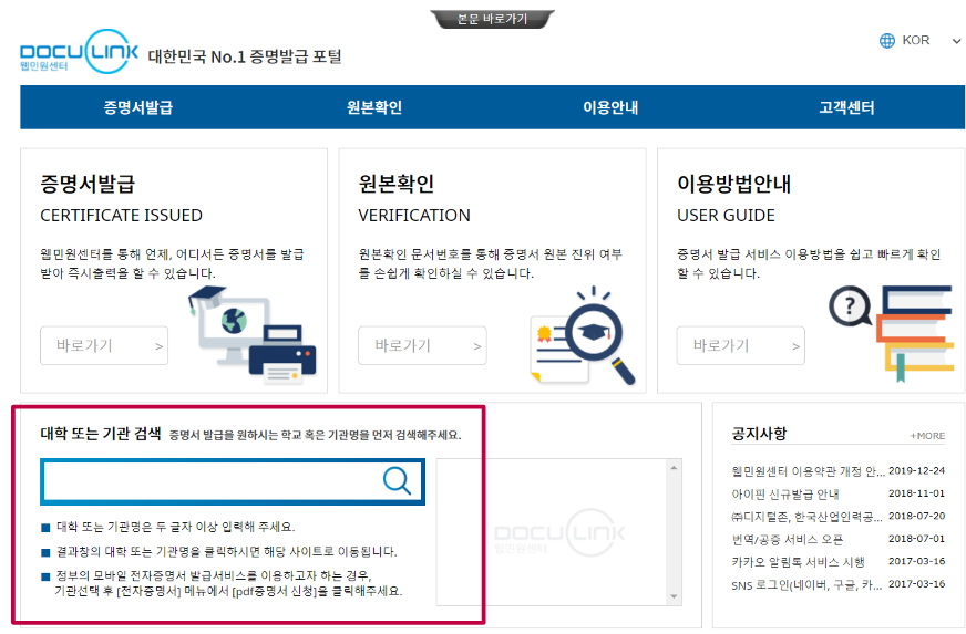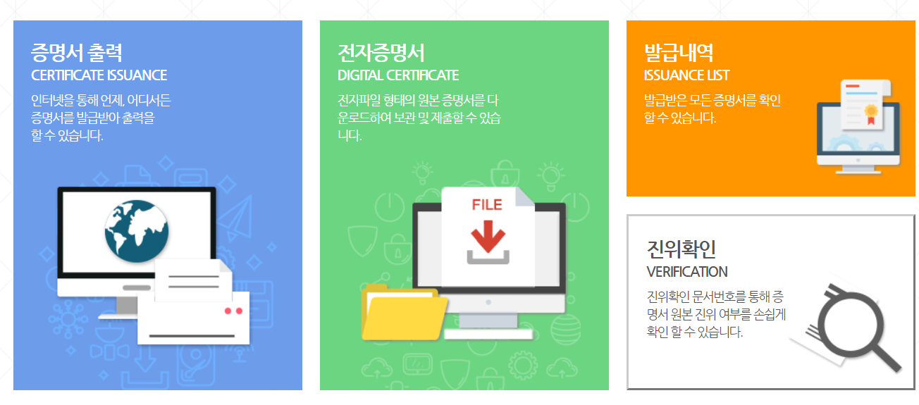 졸업증명서, 성적증명서, 재학증명서 등 대학교 증명서 인터넷발급. 대학증명 발급솔루션