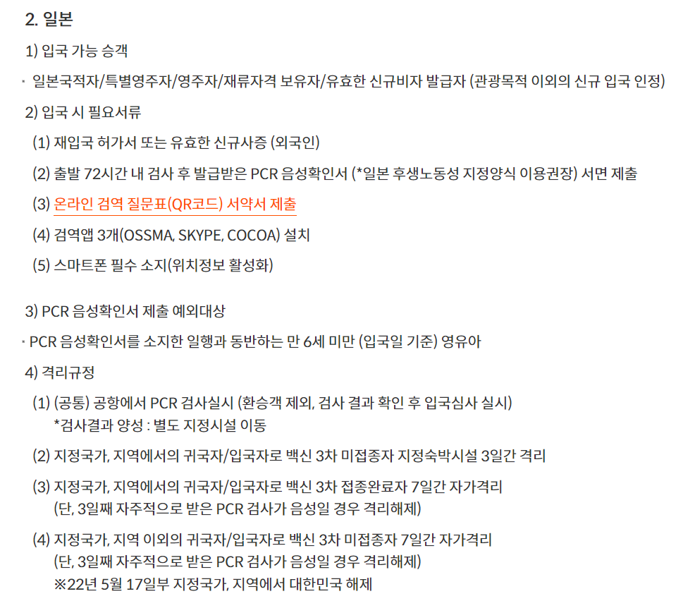 코시국 대한민국→일본 입국기(22년 5월 21일 기준)