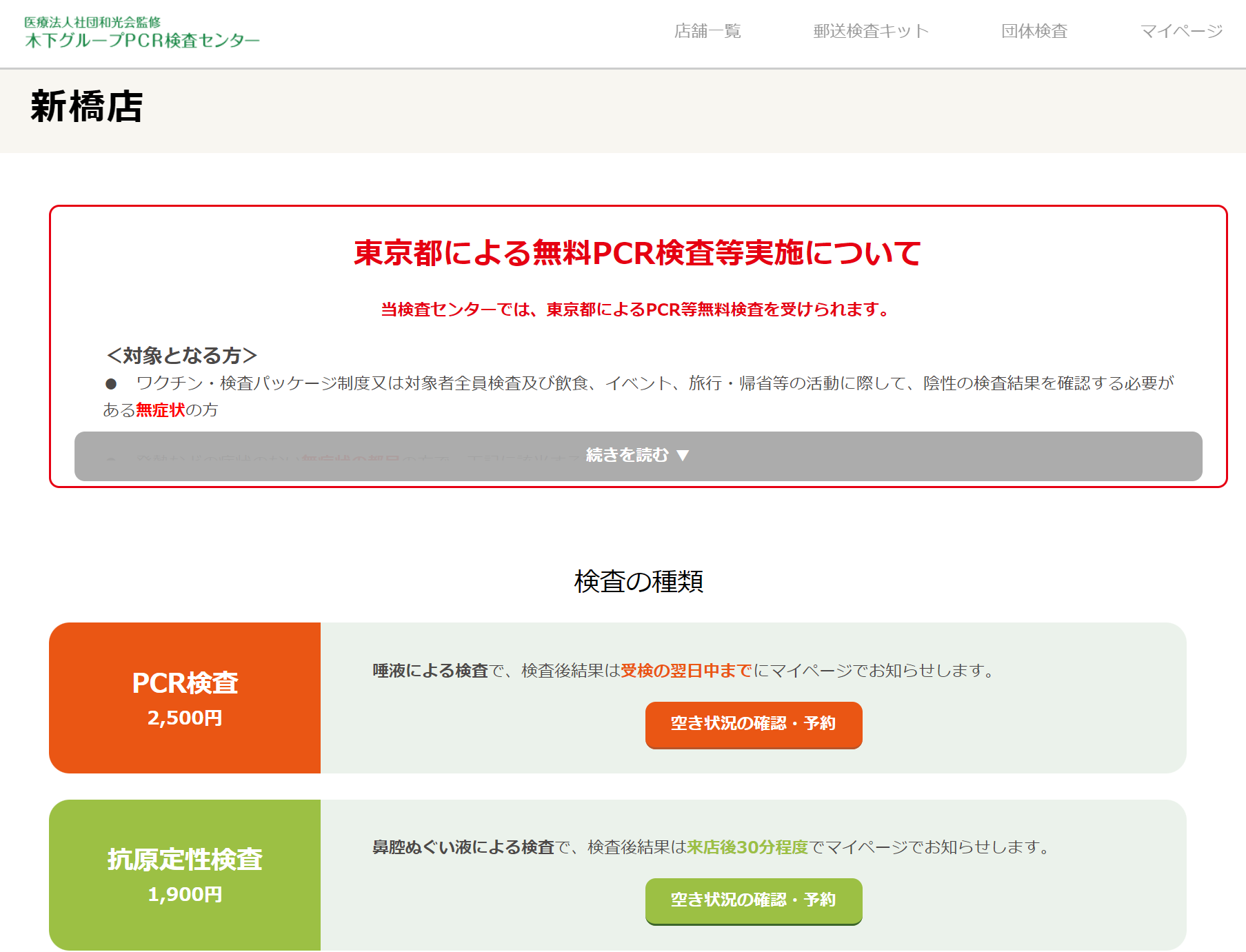 1. 키노시타 그룹 PCR 검사센터(木下グループ PCR検査センター)