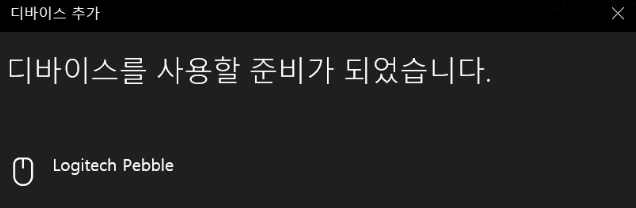 첫 연결이기 때문에 자연스럽게 페블 마우스는 페어링 모드에 들어간다.