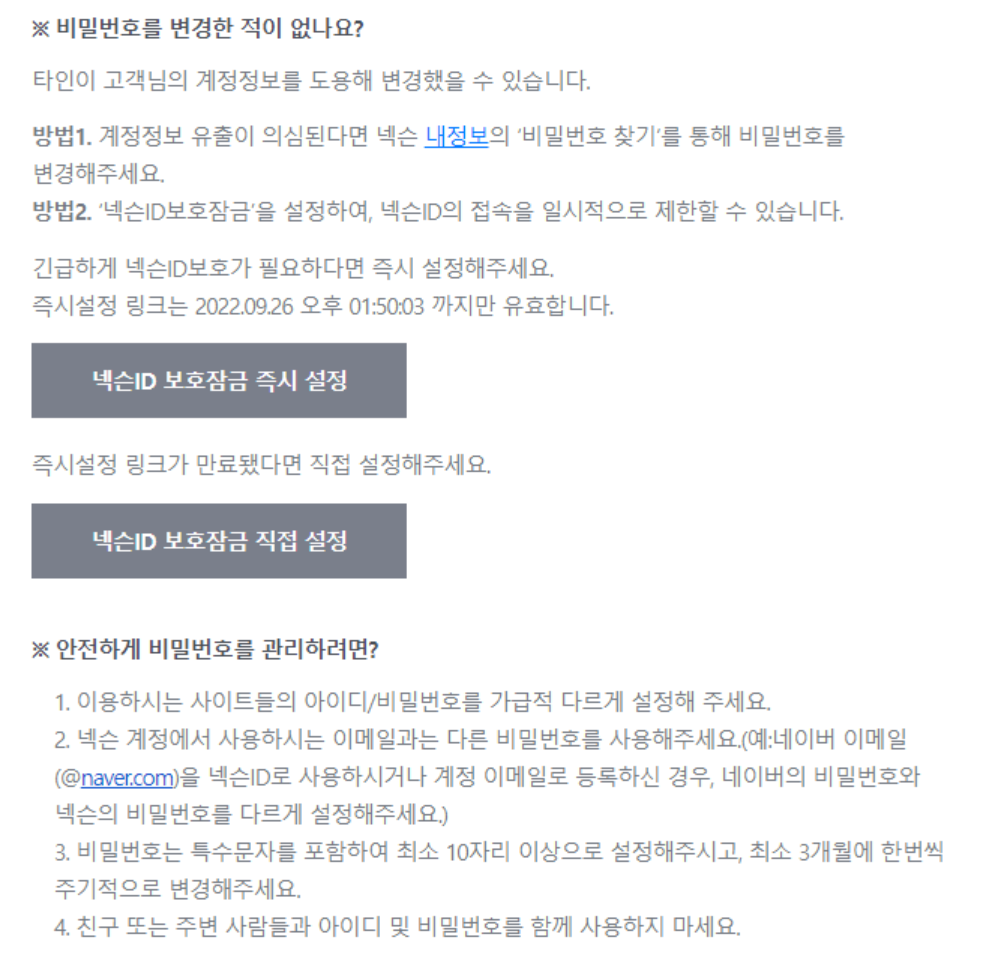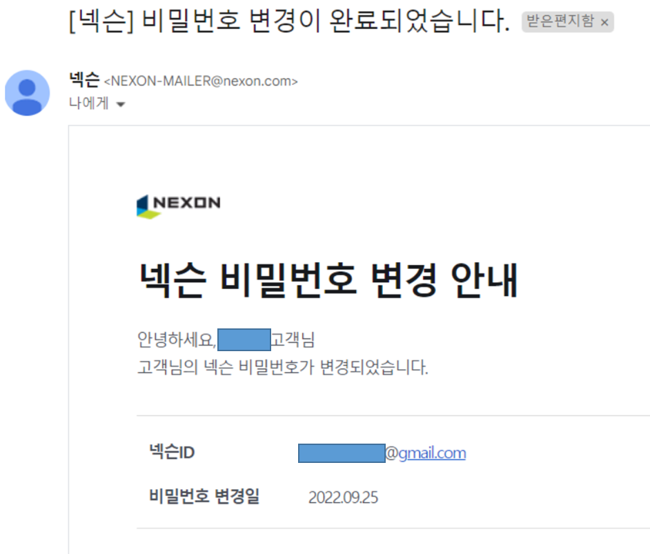 메일 정리 도중 넥슨 비밀번호 변경 메일이 확인됐다. 난 사용하지도 않는데...