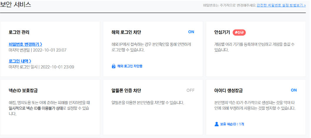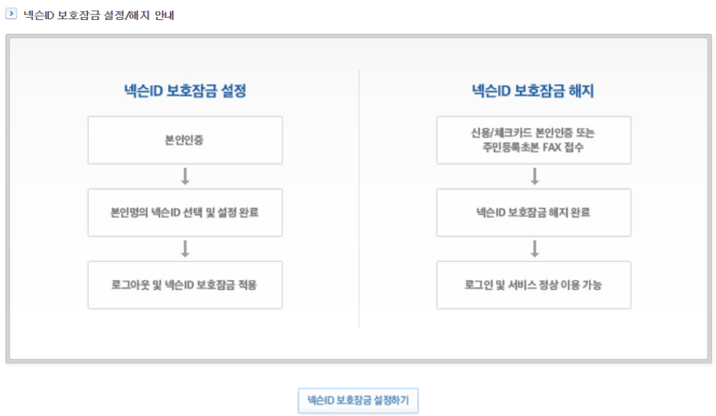 "넥슨ID 보호 잠금 즉시 설정"이라는 링크는 이미 만료 됐으니 "넥슨 ID 보호 잠금 직접 설정"을 클릭했다.