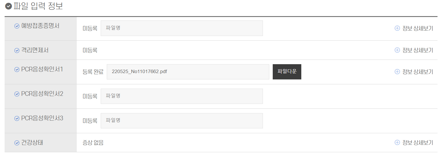 1. 대한민국 입국시에 PCR음성확인서는 반드시 별도로 종이서류를 지참하셔야 합니다.