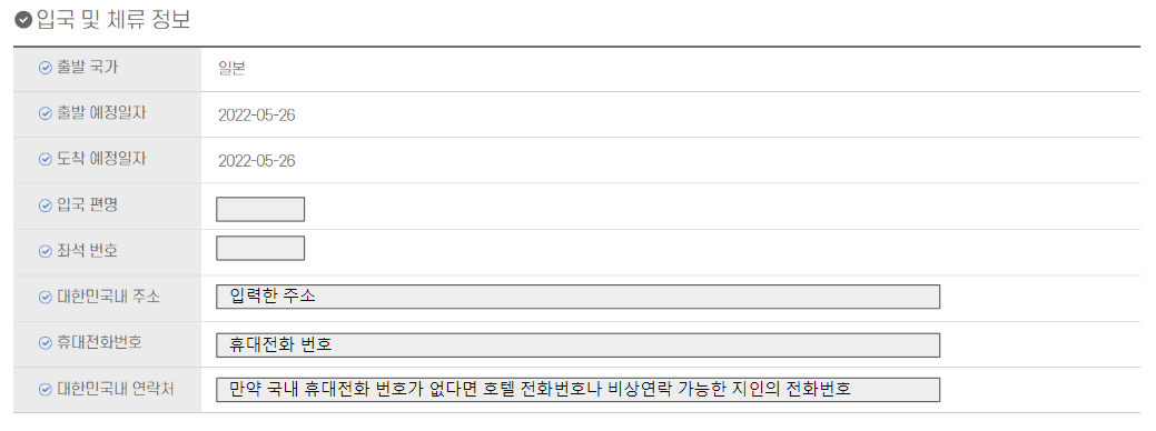이미 입력을 다하고 입국을 진행했기 때문에 입력 결과를 보면서 필요한 내용을 정리해보면 아래와 같다.