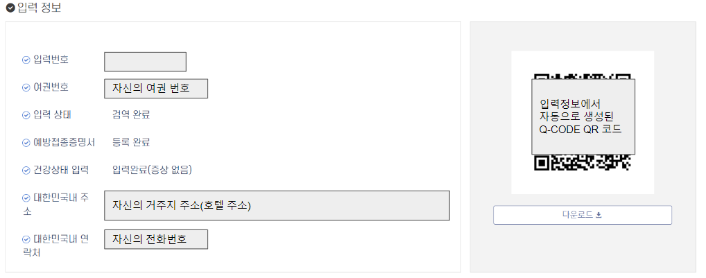 국내 입국시에는 Q-CODE를 진행해서 QR코드를 발급받아야 좀더 빠르게 입국이 가능하다.