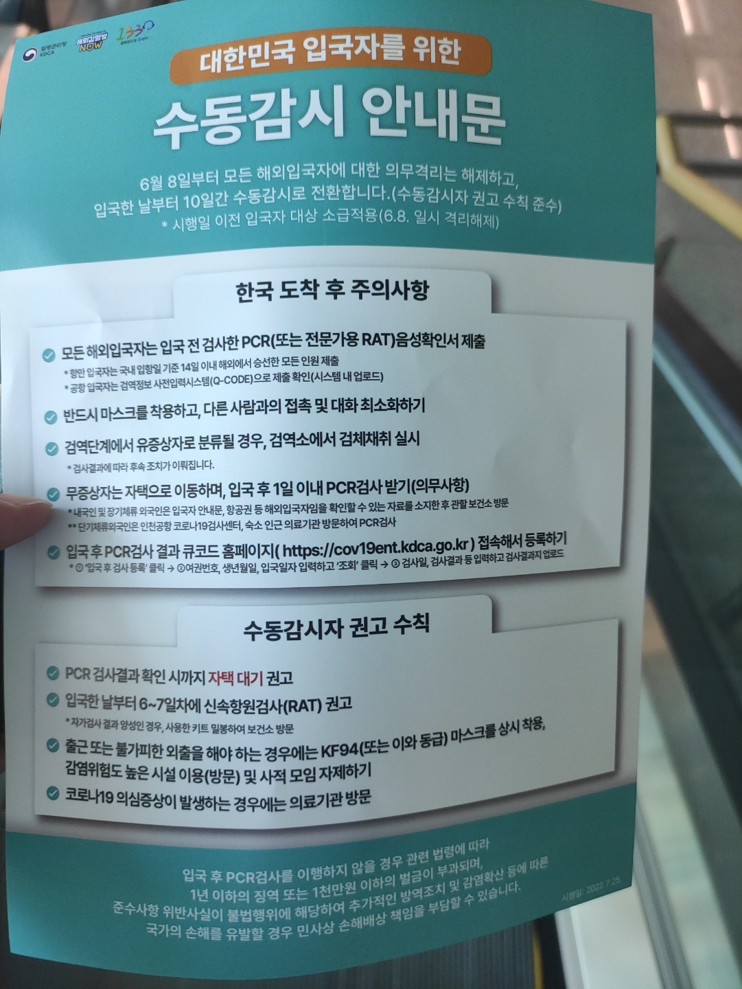 입국시 3일 이내 PCR검사에서 1일이내 PCR검사로 바뀌고