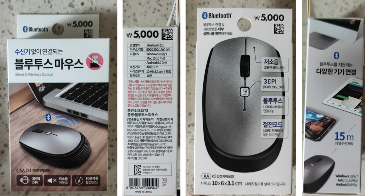 이번에 고른 마우스는 5000원 짜리 블루투스 마우스 이다