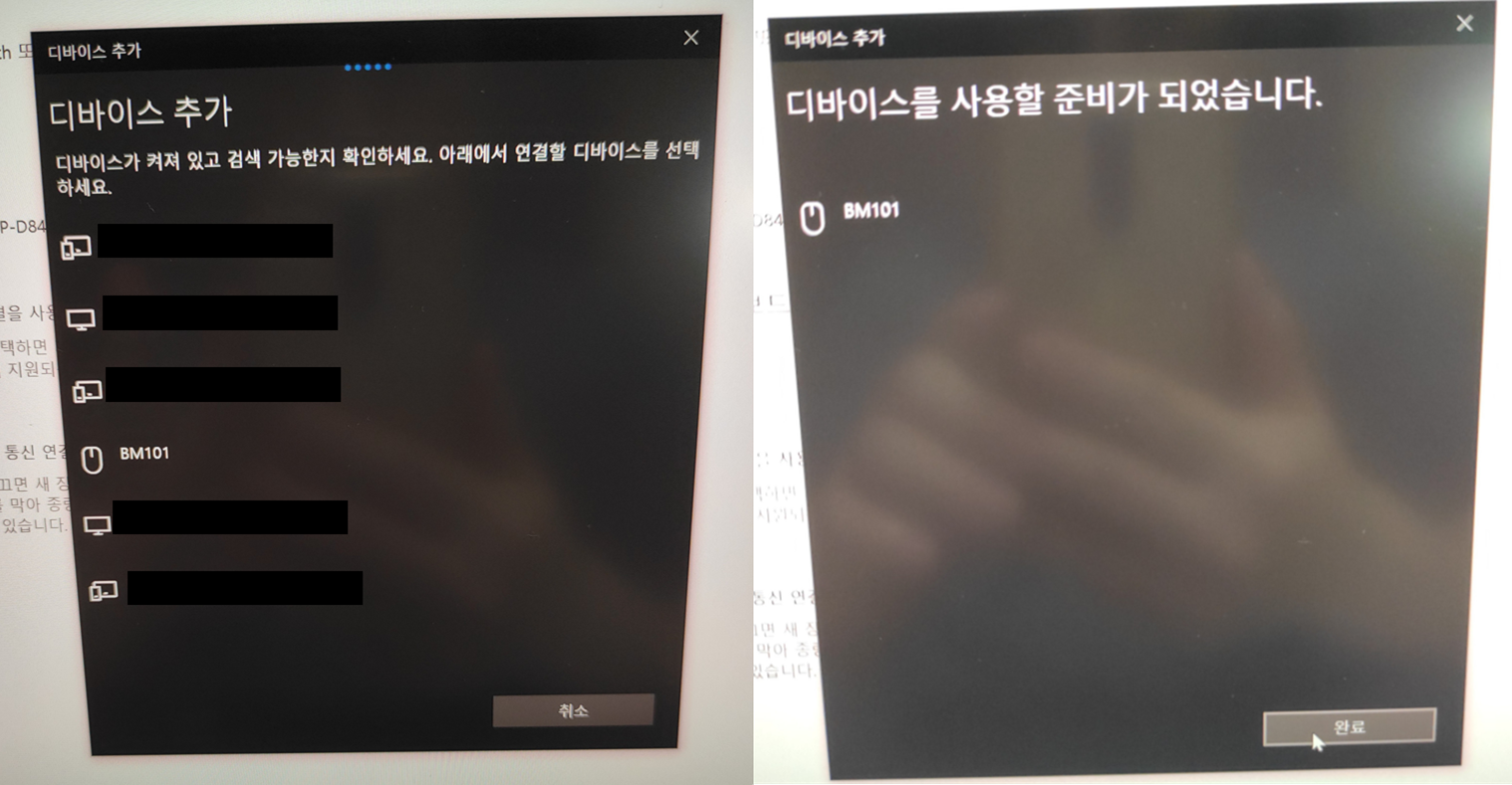 건전지를 넣고 페어링을 진행하면