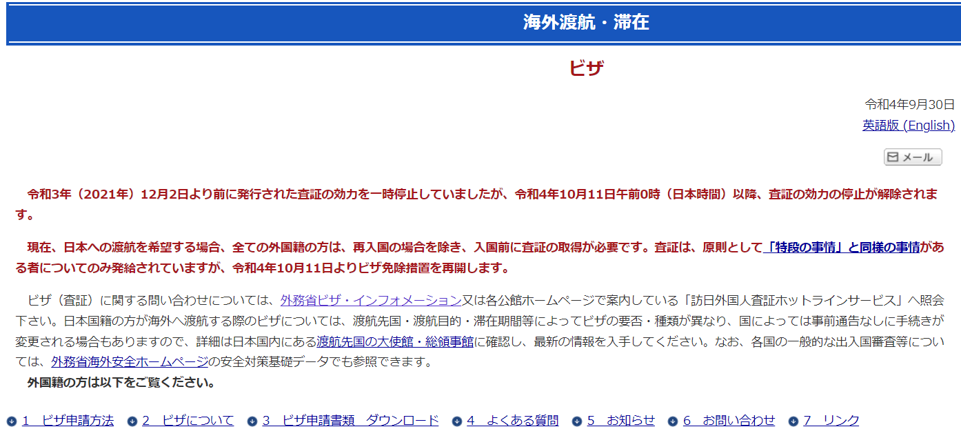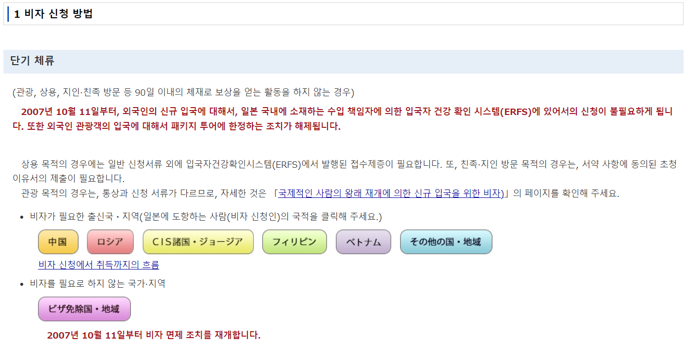 기사로는 전체 요약본 같은 부분이 있으니 공식 사이트인 외무성 비자 부분을 살펴보자