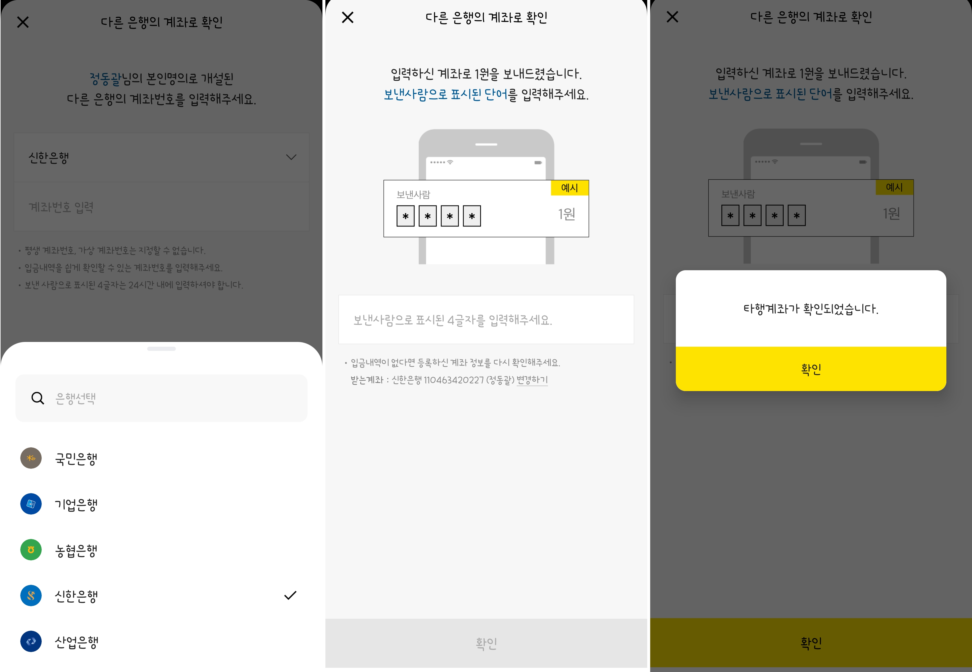 신분증을 확인하면 다음 확인은 다른은행 계좌로 신분 확인을 한번 더 한다.