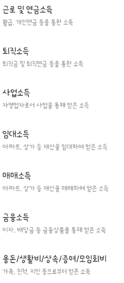 자금출처는 직장인이라면 "근로 및 연금소득"일 것이고... 아니면 기타 이유로 기재해도 된다..
