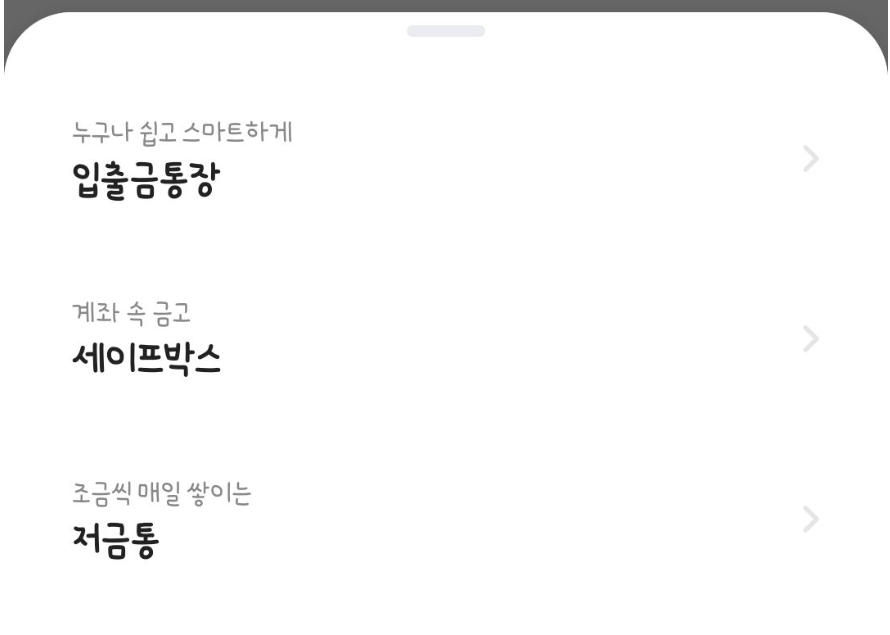 그러면 아래쪽에서 3가지 메뉴가 보이게 되고 그중에서 입출금통장으로 진행했다.