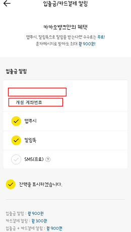 입출금 알림도 가능하고 SMS의 경우 유료이니 알림톡(카톡)과 앱푸시로 설정해두자