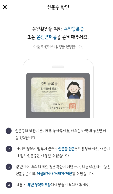 신분증을 확인하면 다음 확인은 다른은행 계좌로 신분 확인을 한번 더 한다.