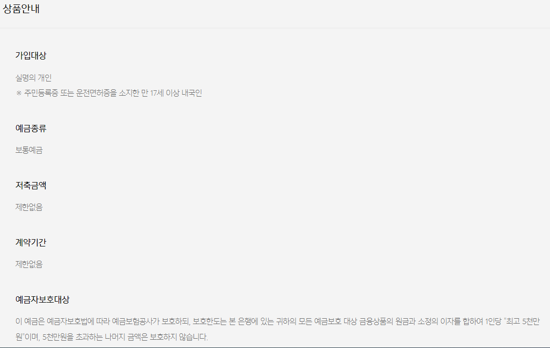 입출금 통장을 누르면 간단한 설명화면이 나온다.