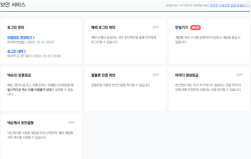 "넥슨ID 보호 잠금 즉시 설정"이라는 링크는 이미 만료 됐으니 "넥슨 ID 보호 잠금 직접 설정"을 클릭했다.