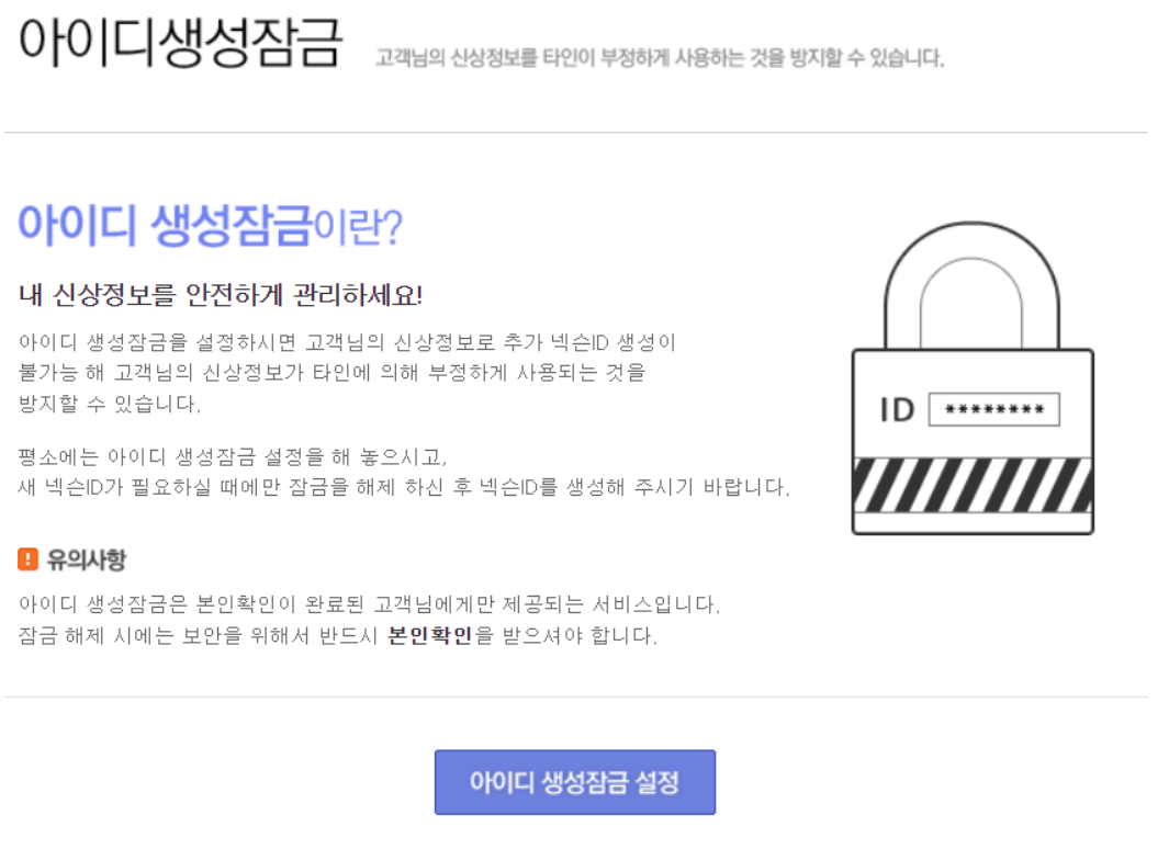 아마도 동일 신상정보로 아이디가 추가 생성되는 것을 잠그는 기능처럼 보인다.