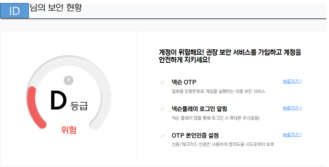 게임 계정에 불과한데 금융정보와 연결되는 OTP로 본인인증 설정은 너무 위험한 거 아닌가??